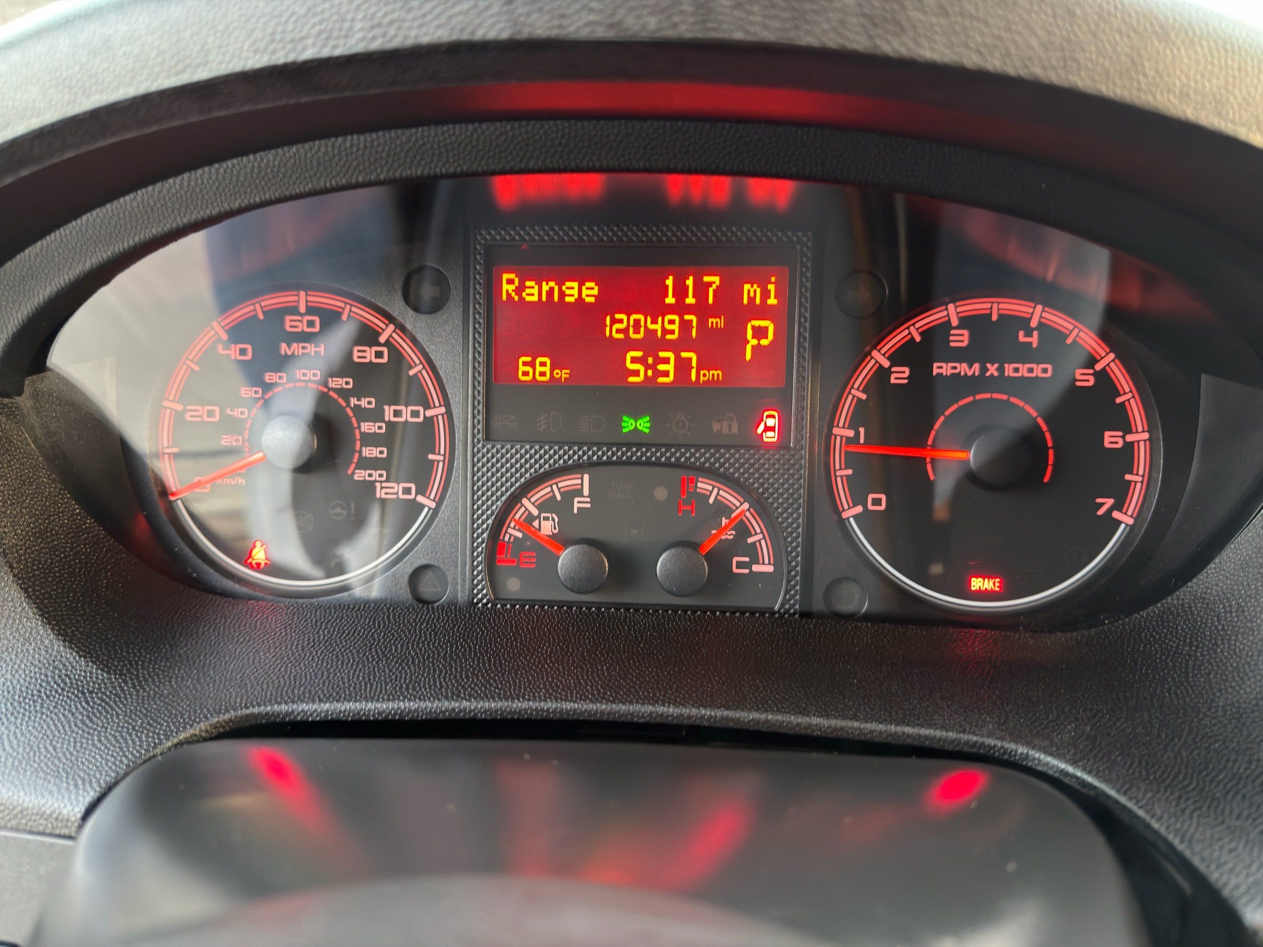 Low level warnings: Low level warning for oil, coolant, fuel, washer fluid and brake fluid