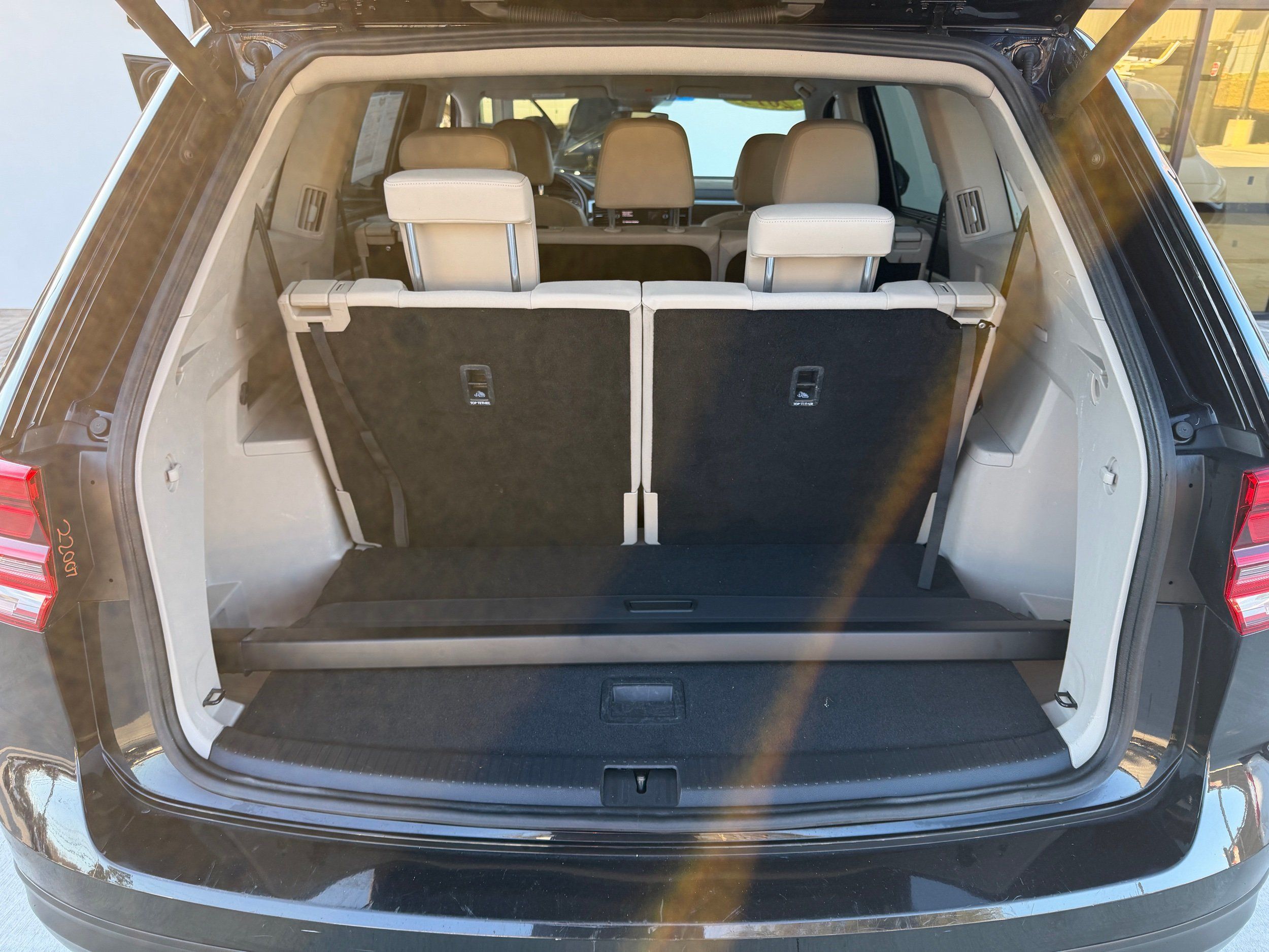 Third-row seatback upholstery: Carpet third-row seatback upholstery